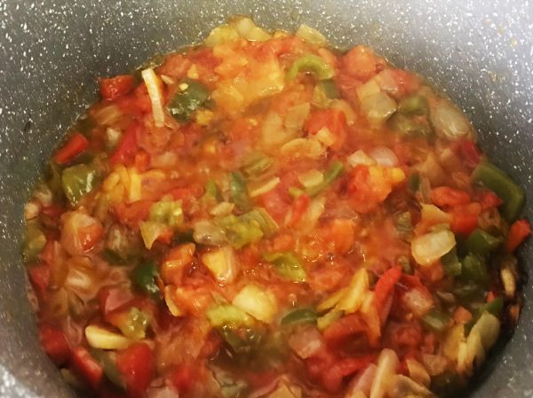 Si tenemos tomate lo añadiremos a la cazuela cuando el sofrito este terminado.